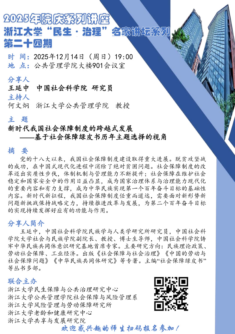 【活动预告】浙江大学“民生·治理”名家讲坛系列第二十四期